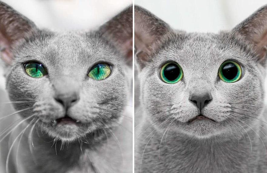 Estos preciosos gatos de la raza azul ruso tienen los ojos más hipnotizantes
