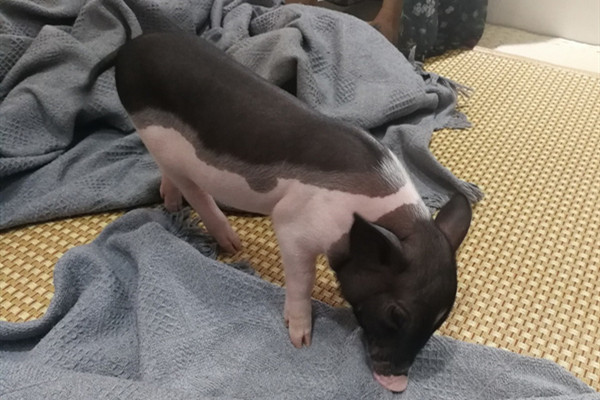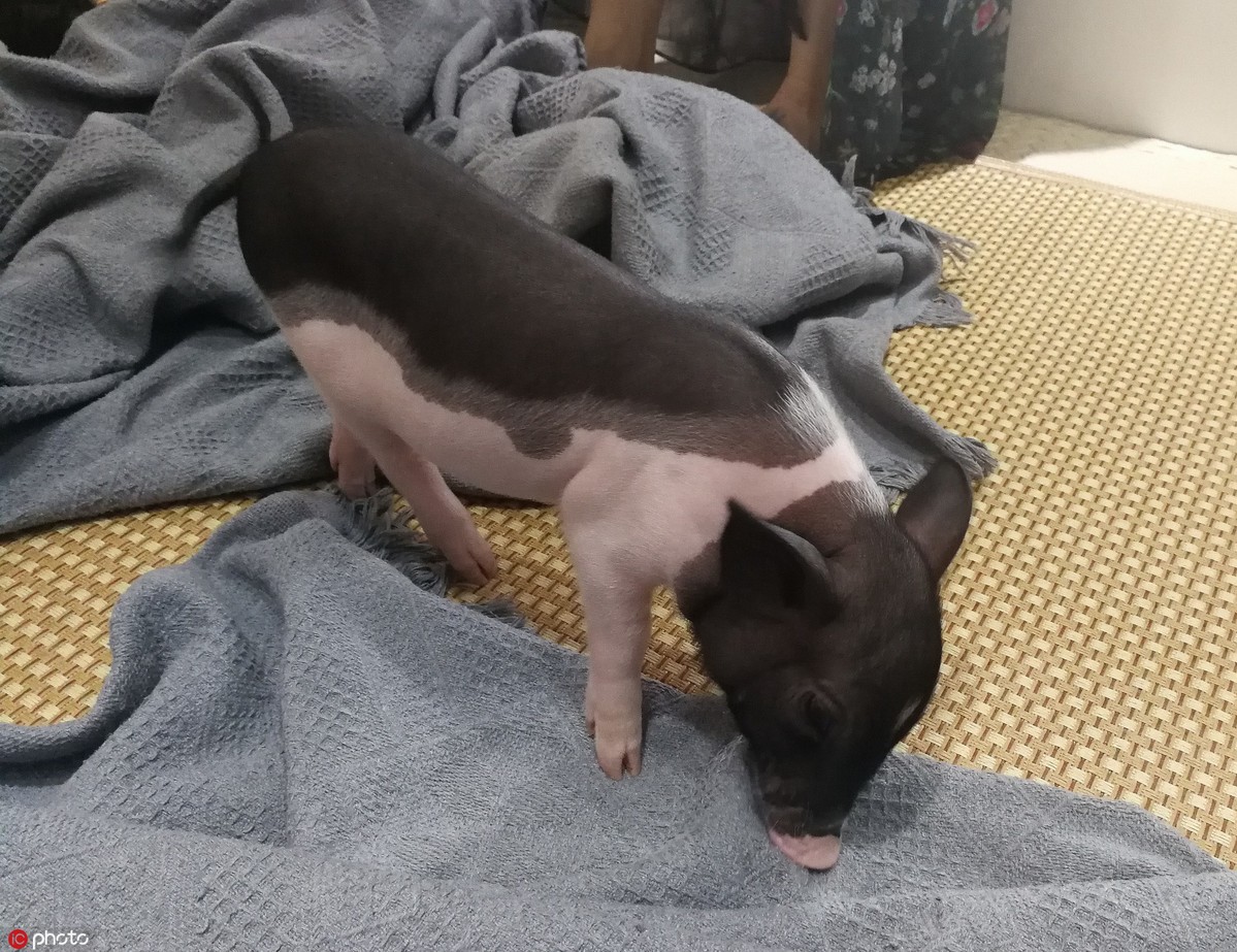 Un cerdito caminando en un café en Hangzhou, provincia de Zhejiang, este de China, 24 de agosto de 2019.