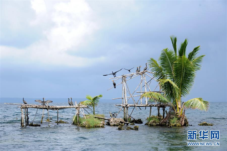 Las aves acuáticas descansando sobre la madera del lago Tegano en la isla oriental Rennell en las Islas Salomón el 30 de octubre de 2013.