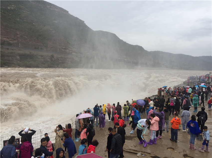 Visitantes en las cataratas de Hukou, tramo del río Amarillo en el condado de Jixian, provincia de Shanxi, norte de China.