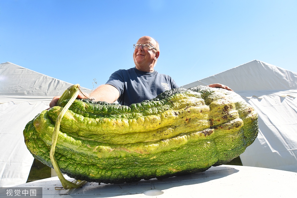 Gordon Lowe cultivó este calabacín masivo en Hampshire, Reino Unido, el 2 de septiembre de 2018.