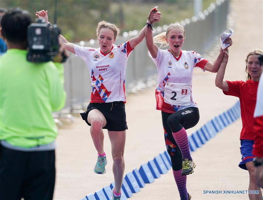 El equipo de Rusia compite en la final de la prueba de relevos femenil de la orientación de los 7 Juegos Mundiales Militares del Consejo Internacional del Deporte Militar, en Wuhan, capital de la provincia de Hubei, en el centro de China, el 23 de octubre de 2019.