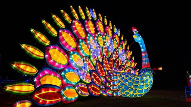 Imagen del 9 de noviembre de 2019 de una instalación de luz exhibida durante el "Moonlight Forest Magical Lantern Art Festival" en el Arboreto y Jardín Botánico del Condado de Los Angeles, en Los Angeles, Estados Unidos.