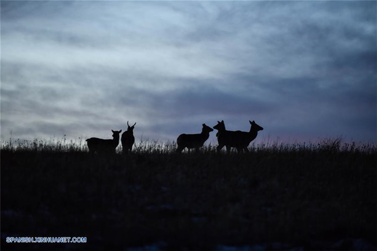 Imagen del 25 de noviembre de 2019 del crepúsculo en el punto escénico del bosque de piedras Hexigten, en la bandera de Hexigten de la ciudad de Chifeng, en la región autónoma de Mongolia Interior, en el norte de China. El bosque de piedras de Hexigten es un punto escénico con calificación de nivel 5A, la mayor calificación en China. El bosque de piedras creado naturalmente es famoso por sus formas de piedras únicas.