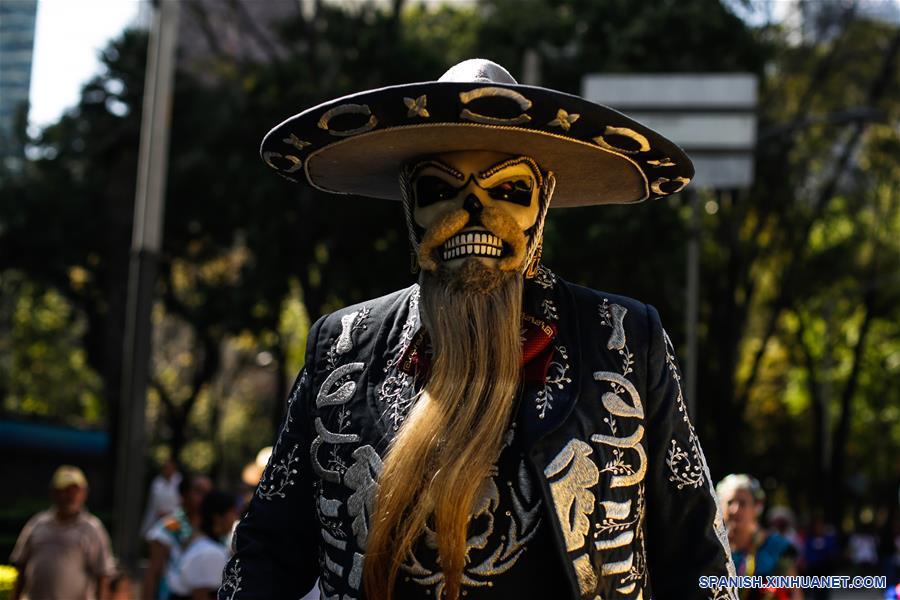 Una persona disfrazada desfila en el Carnaval de México 2019, en la Ciudad de México, capital de México, el 7 de diciembre de 2019.