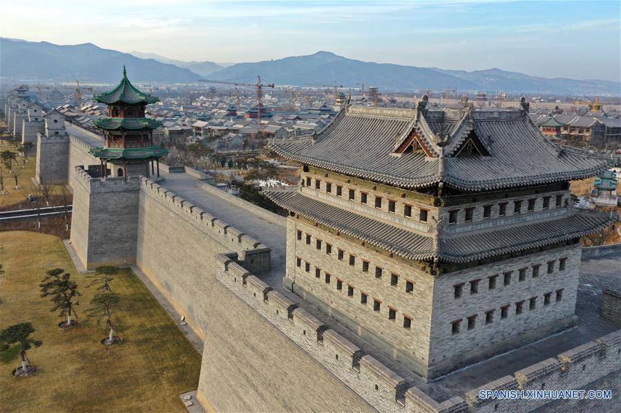 Vista aérea del 17 de diciembre de 2019 del antiguo distrito de Taiyuan en la ciudad de Taiyuan, capital de la provincia de Shanxi, en el norte de China. El antiguo distrito de Taiyuan es parte de las reliquias de la antigua ciudad de Jinyang que en la actualidad se encuentra en la ciudad de Taiyuan. Se le conoce como el "Distrito del Fénix" debido a su diseño general que se asemeja a un fénix en alza.