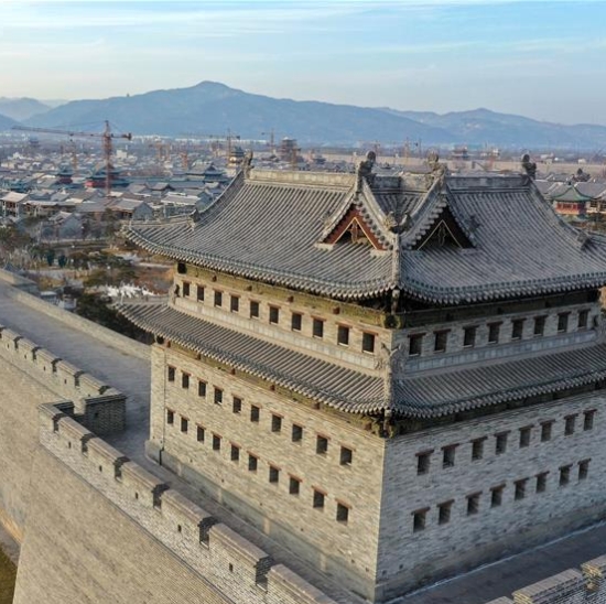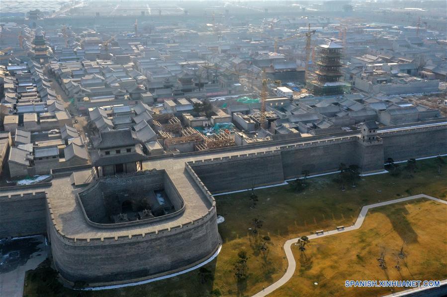 Vista aérea del 17 de diciembre de 2019 del antiguo distrito de Taiyuan en la ciudad de Taiyuan, capital de la provincia de Shanxi, en el norte de China. El antiguo distrito de Taiyuan es parte de las reliquias de la antigua ciudad de Jinyang que en la actualidad se encuentra en la ciudad de Taiyuan. Se le conoce como el "Distrito del Fénix" debido a su diseño general que se asemeja a un fénix en alza.