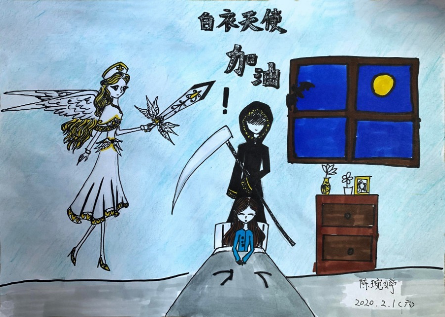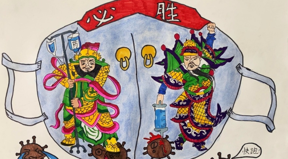 Niños miembros del palacio juvenil del distrito Dongcheng de Beijing se dieron a la tarea de crear docenas de pinturas y carteles para transmitir un mensaje de aliento hacia la lucha contra el coronavirus.