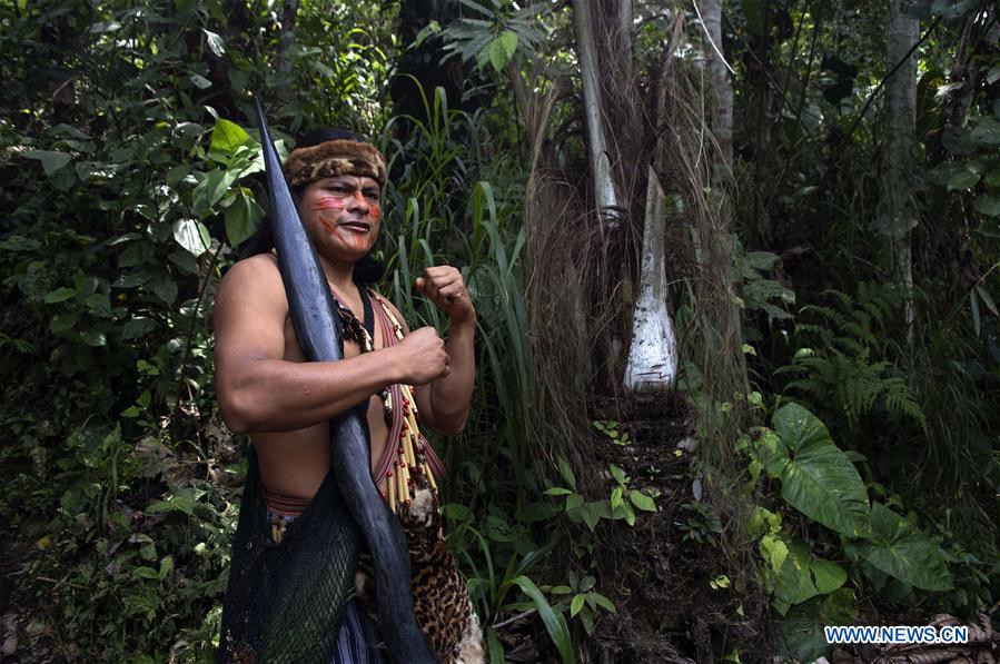 Imagen del 28 de febrero del 2020 de Elías Akachu, de 33 años de edad, líder de la comunidad asentada en la Reserva Natural de Kintia Panki, en la provincia de Morona Santiago, Ecuador. Hace más de 15 años que 10 familias de la etnia shuar comenzaron un proyecto de turismo comunitario donde pueden generar recursos, además de cuidar y habitar la naturaleza amazónica. Ellos aprovechan las riquezas que les brinda la Reserva Natural de Kintia Panki, que en idioma shuar significa "boa que oscurece", donde turistas asisten para convivir con la naturaleza y realizar rituales tradicionales.