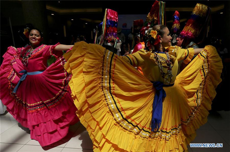 Integrantes del grupo Danzas Folclóricas de Honduras, realizan un baile tradicional en Tegucigalpa, Honduras, el 3 de marzo de 2020. La Secretaría de Turismo de Honduras lanzó el martes una campaña orientada a promocionar el turismo interno antes del inicio de las vacaciones de verano a finales de marzo.