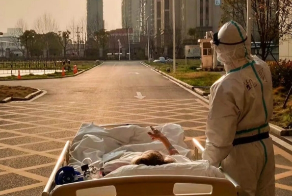 La imagen fue captada después de las 5 pm del 5 de marzo en lafilial este del hospital del Pueblo de la Universidad de Wuhan.