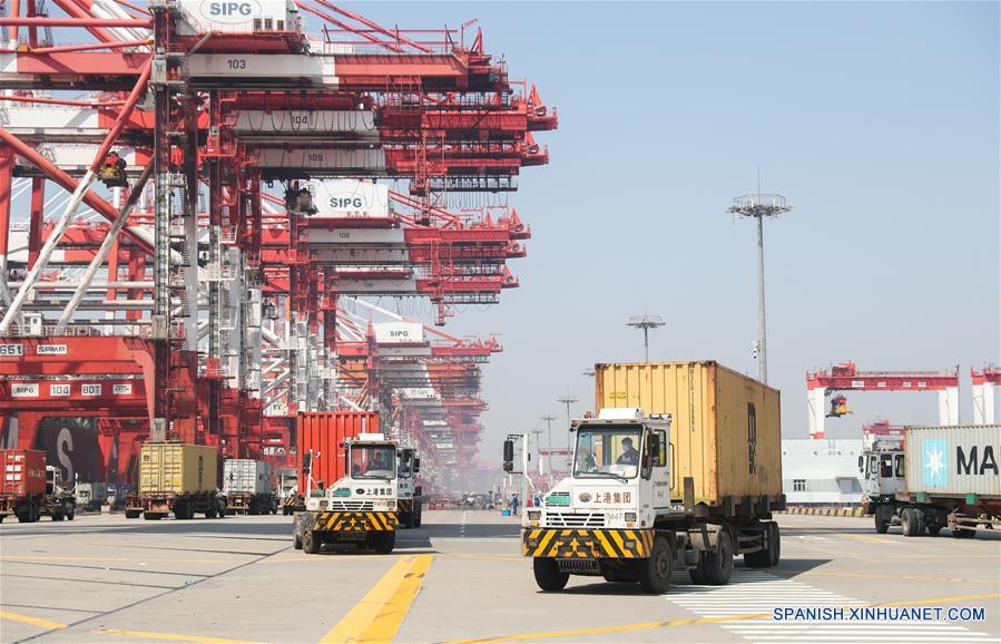 Imagen del 18 de marzo de 2020 del muelle de contenedores del puerto Yangshan en Shanghai, en el este de China. El puerto internacional de contenedores experimentó un flujo creciente de buques de carga durante las últimas dos semanas.