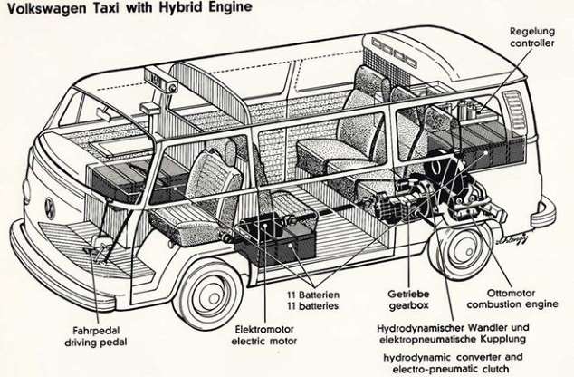 Este modelo nunca salió de la pizarra de dibujo y bien podría haber sido olvidado si no fuera por un escritor emprendedorcon una inclinación por la recopilación de libros de coches oscuros. Los diseños del vehículo, basados en la furgoneta T2 de segunda generación, se publicaron en 1979 en "The Complete Book of Electric Vehicles". El kilometraje estimado del vehículo previsto (20 mpg) no fue exactamente impresionante. Pero si se hubiera producido, habría precedido al Toyota Prius – el primer híbrido producido en masa – por casi dos décadas.