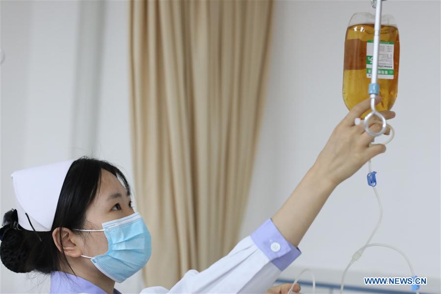 La enfermera Long Bifei trabaja en el Hospital Popular Provincial de Guizhou en Guiyang, provincia de Guizhou, en el suroeste de China, el 12 de mayo de 2020. El Día Internacional de la Enfermería se celebra anualmente el 12 de mayo. Varias enfermeras de todo el país seguirán atendiendo sus puestos de trabajo durante el día.