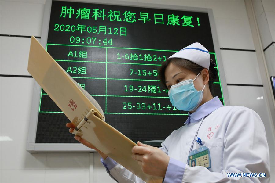 La enfermera Long Bifei trabaja en el Hospital Popular Provincial de Guizhou en Guiyang, provincia de Guizhou, en el suroeste de China, el 12 de mayo de 2020. El Día Internacional de la Enfermería se celebra anualmente el 12 de mayo. Varias enfermeras de todo el país seguirán atendiendo sus puestos de trabajo durante el día.
