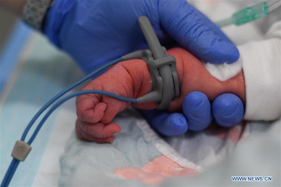 Imagen del 11 de mayo de 2020 de una enfermera revisando a un recién nacido en el departamento de emergencias del Hospital Infantil de la Facultad de Medicina de la Universidad de Zhejiang en Hangzhou, provincia de Zhejiang, en el este de China. El departamento de emergencias brinda servicios médicos las 24 horas y atiende a más de 400.000 pacientes al año.