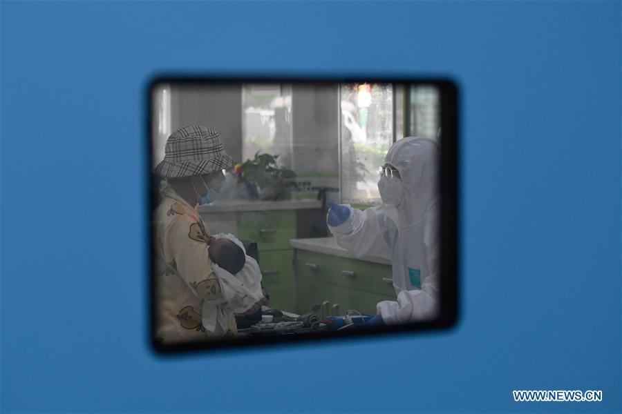 Imagen del 11 de mayo de 2020 de la enfermera Sun Zhiting (d) trabajando en el departamento de emergencias del Hospital Infantil de la Facultad de Medicina de la Universidad de Zhejiang en Hangzhou, provincia de Zhejiang, en el este de China. El departamento de emergencias brinda servicios médicos las 24 horas y atiende a más de 400.000 pacientes al año.