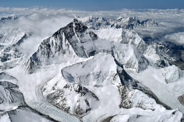 Vista del Monte Qomolangma, 14 de mayo. El Monte Qomolangma es la montaña más alta del mundo. Forma un mundo de hielo y nieve, cuyo paisaje es muy espectacular.