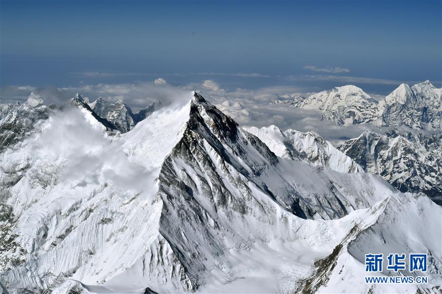 Vista del Monte Qomolangma, 14 de mayo. El Monte Qomolangma es la montaña más alta del mundo. Forma un mundo de hielo y nieve, cuyo paisaje es muy espectacular.