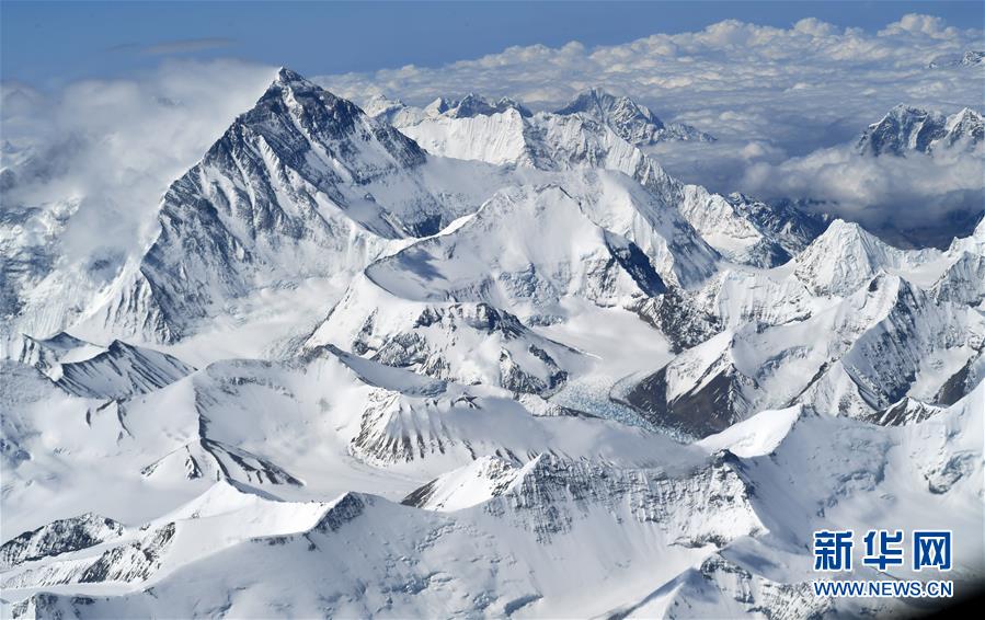 Vista del Monte Qomolangma, 14 de mayo. El Monte Qomolangma es la montaña más alta del mundo. Forma un mundo de hielo y nieve, cuyo paisaje es muy espectacular.