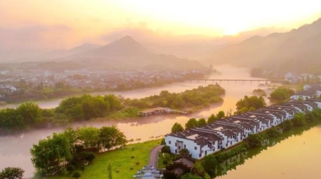- Paisaje del área escénica de Taohuatan en el condado de Jingxian, Anhui de China