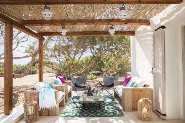 Todo en este porche en Formentera invita al relax: el blanco que lo ilumina, sus vistas de postal y ese estilo boho chic que le da un aire de auténtico chill out. Para ampliar el dormitorio principal hacia el exterior, se instaló una pérgola donde se habilitó un salón de verano para disfrutar de los atardeceres de la isla. No te pierdas el resto de casa de postal.