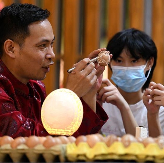 Niños intentan realizar un trabajo de carpintería en una zona de industria cultural en el distrito de Qiaoxi de la ciudad de Shijiazhuang, en la provincia de Hebei, en el norte de China, el 10 de agosto de 2020. Qiaoxi ha organizado una serie de actividades para enriquecer las vacaciones de verano de los niños y promover el patrimonio cultural intangible.