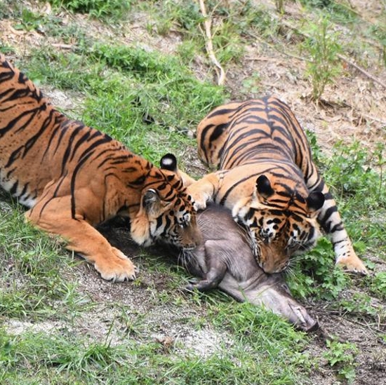 Imagen del 19 de agosto de 2020 de tigres del sur de China en la Reserva Natural de la Montaña Meihua en Longyan, provincia de Fujian, en el sureste de China. La Montaña Meihua es conocida como el hogar del tigre del sur de China, uno de los animales más amenazados del mundo.