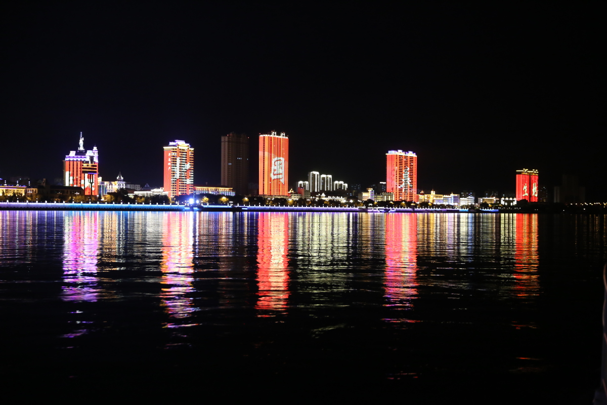Una vista nocturna del río Heilong en la ciudad de Heihe, provincia de Heilongjiang, noreste de China, 20 de septiembre de 2020.