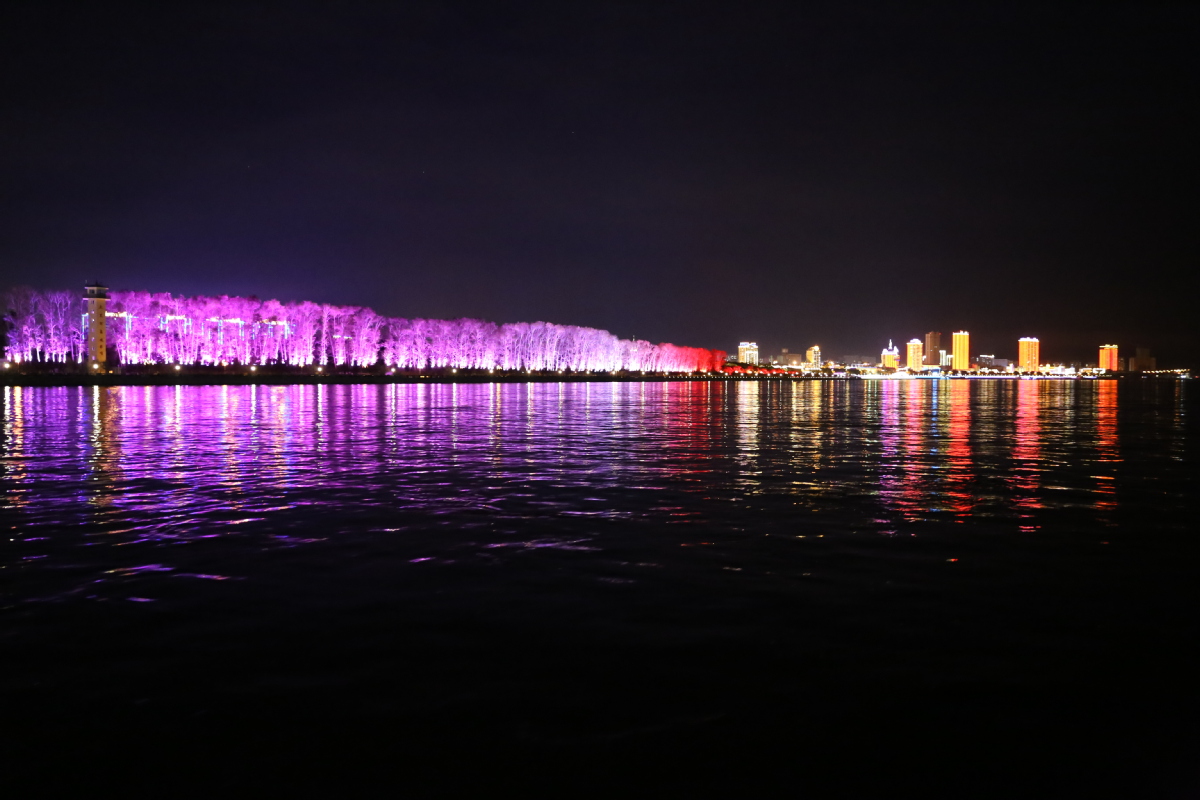 Una vista nocturna del río Heilong en la ciudad de Heihe, provincia de Heilongjiang, noreste de China, 20 de septiembre de 2020.