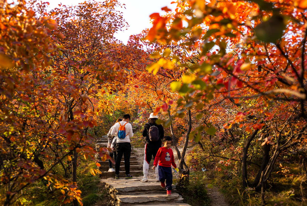 Turistas disfrutan del paisaje otoñal en Pofengling, distrito de Fangshan en Beijing, el 18 de octubre de 2020.