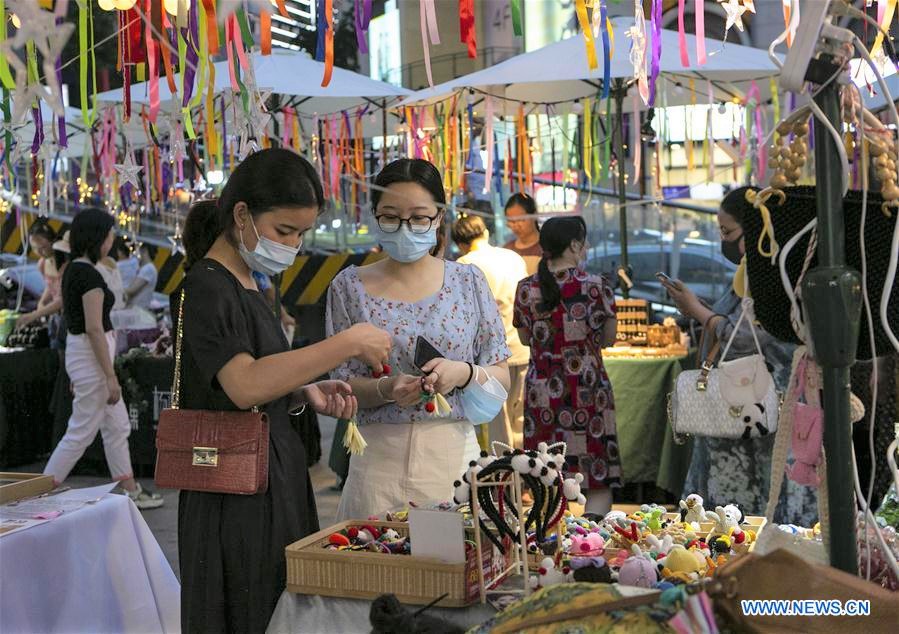 La gente compra en un mercado nocturno en Chengdu, provincia de Sichuan, suroeste de China, el 4 de junio de 2020.
