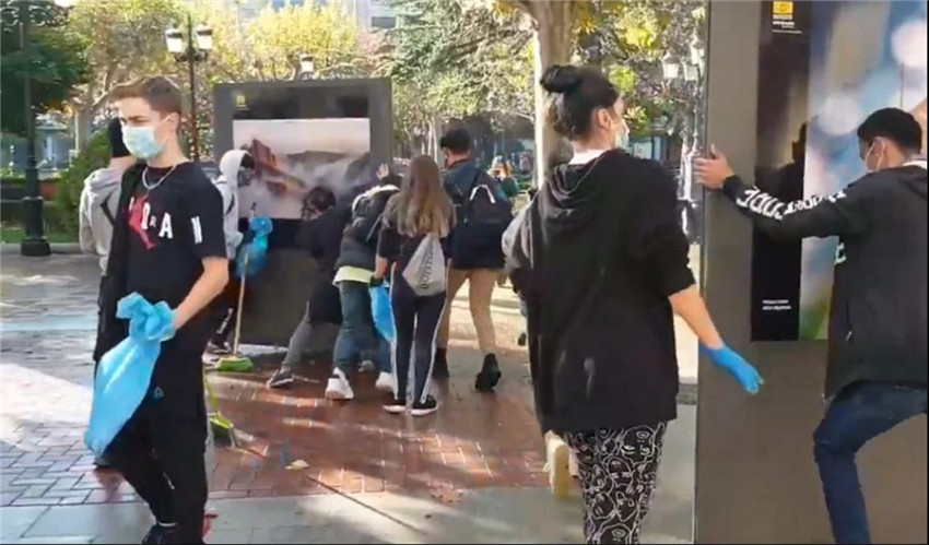 Una veintena de adolescentes de Logroño, España, se han organizado para limpiar, desde la madrugada de este domingo, la destrucción causada por los incidentes ocurridos ayer en esta localidad y reubicar el mobiliario urbano dañado por los disturbios provocados por unos 150 radicales.