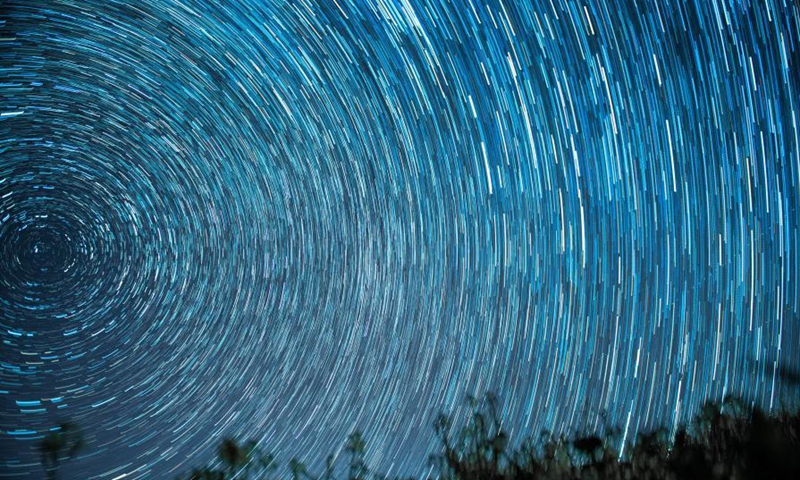Fotomontaje del 19 de noviembre de 2020 de los rastros de estrellas sobre el lago Nianhu en el condado de Huize de la ciudad de Qujing, provincia de Yunnan, suroeste de China.