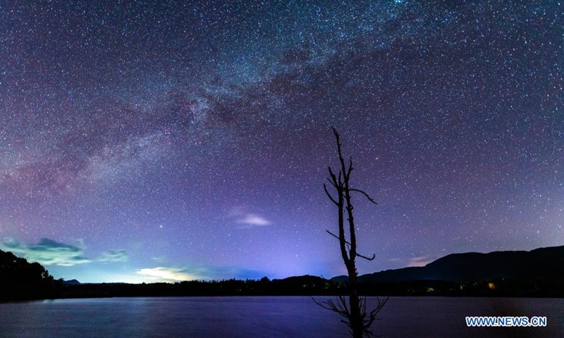 Fotografía del 18 de noviembre de 2020 del cielo estrellado sobre el lago Nianhu en el condado de Huize de la ciudad de Qujing, provincia de Yunnan, suroeste de China.