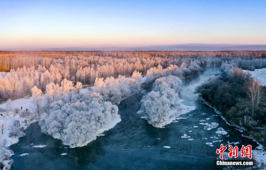 Así luce el paisaje por estos días de invierno en la aldea de Pingtai, condado de Xunke, provincia de Heilongjiang, noreste de China. El pueblo se ha convertido en una atracción para los turistas por los paisajes invernales que parecen más un país de las maravillas de cristal.