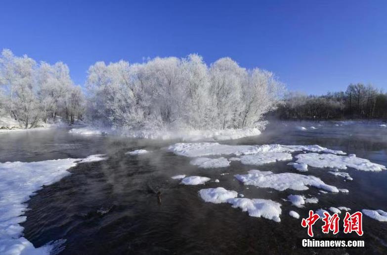 Así luce el paisaje por estos días de invierno en la aldea de Pingtai, condado de Xunke, provincia de Heilongjiang, noreste de China. El pueblo se ha convertido en una atracción para los turistas por los paisajes invernales que parecen más un país de las maravillas de cristal.