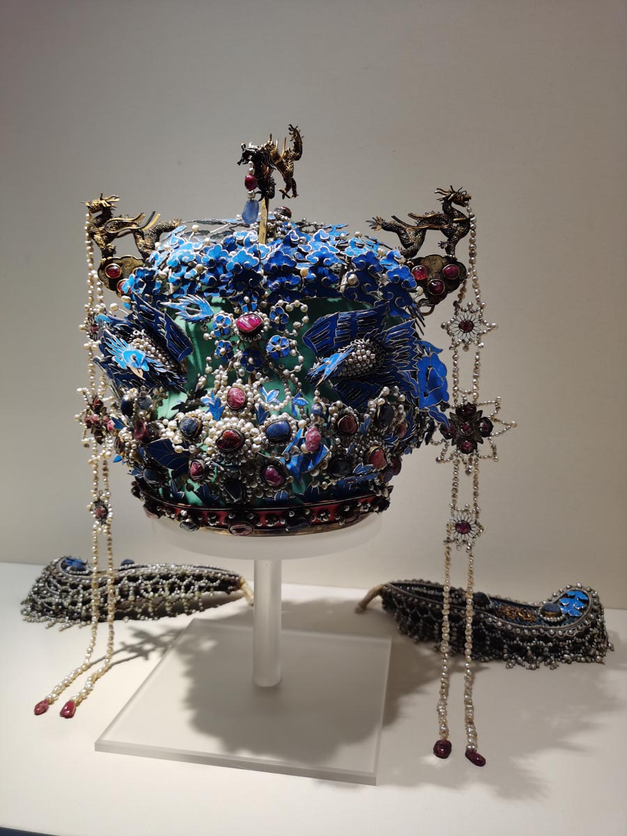 La corona fue una réplica de la pieza de la emperatriz Ming Xiaojing (1565-1611), llamada sanlongliangfengguan, que significa “tiara de 3 dragones y 2 fénix.