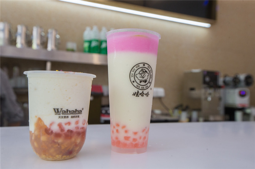 Té con leche de Wahaha en una tienda en Hangzhou, provincia de Zhejiang, este de China, 10 de agosto de 2020.