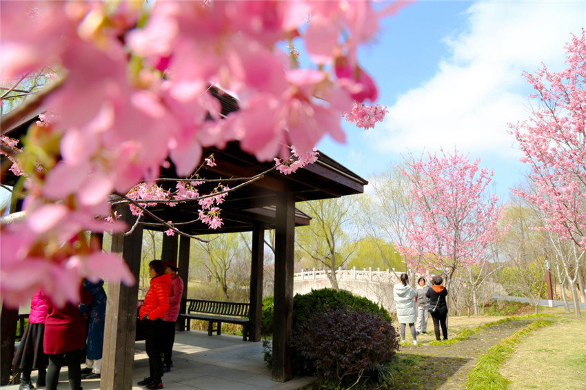 Paisaje de cerezos en el parque Gucun de Shanghai
