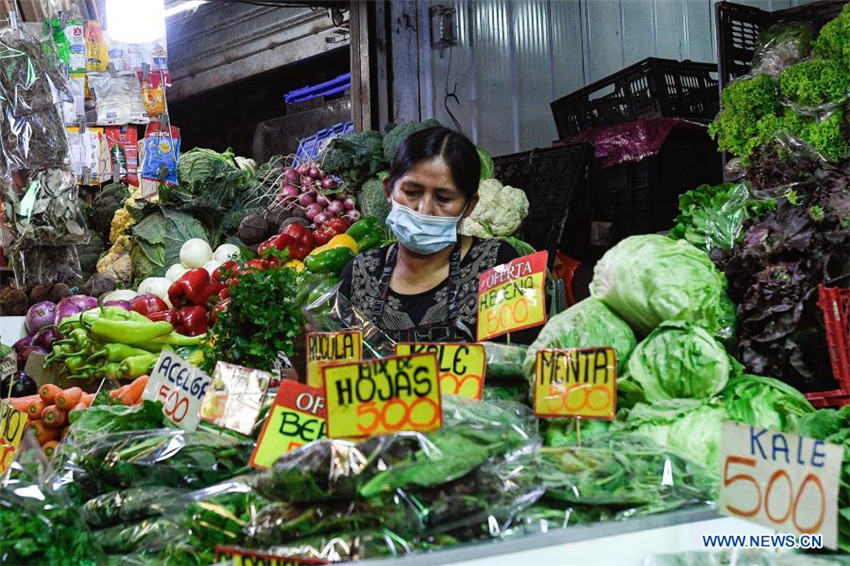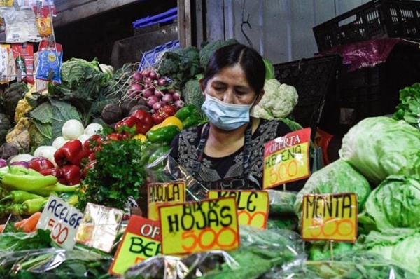 Una mujer trabaja en un puesto de verduras en el mercado La Vega Central, en Santiago, capital de Chile, el 16 de marzo de 2021.