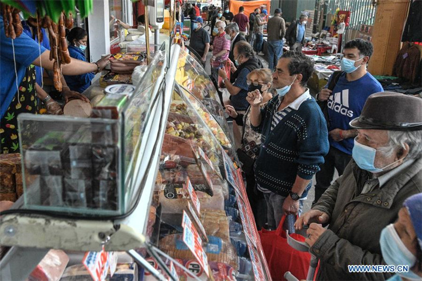 Personas realizan compras en el mercado La Vega Central, en Santiago, capital de Chile, el 16 de marzo de 2021.
