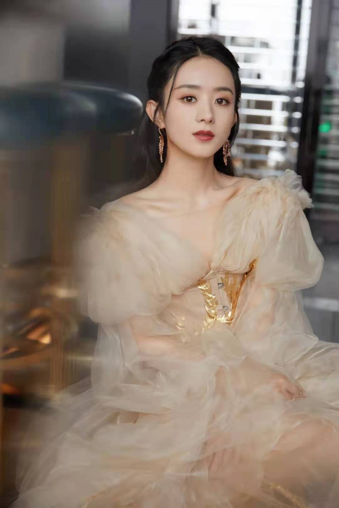 Actriz china Zhao Liying en traje de alta costura de marca nacional