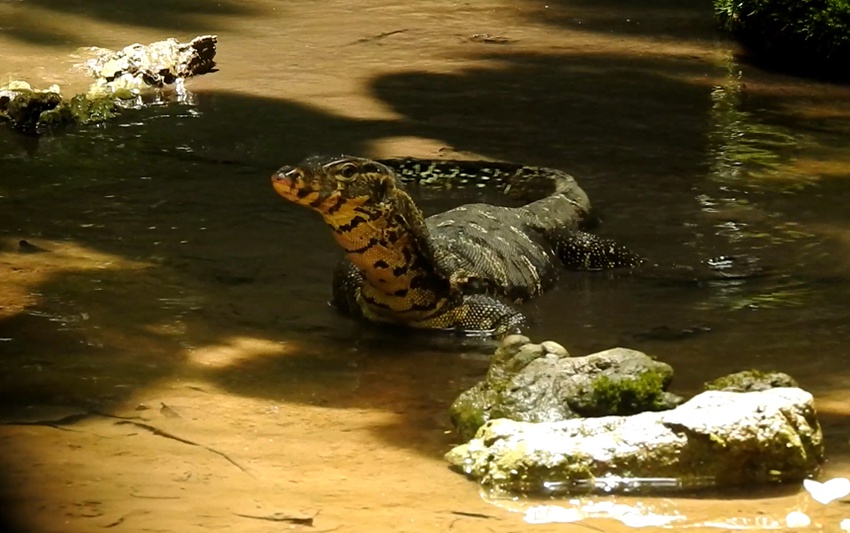 Aparece el "dragón dorado de cinco garras" (lagarto monitor de nariz redonda, animal protegido nacional de primera clase en China) en la reserva natural de Nuozhadu, Pu'er, Yunnan.