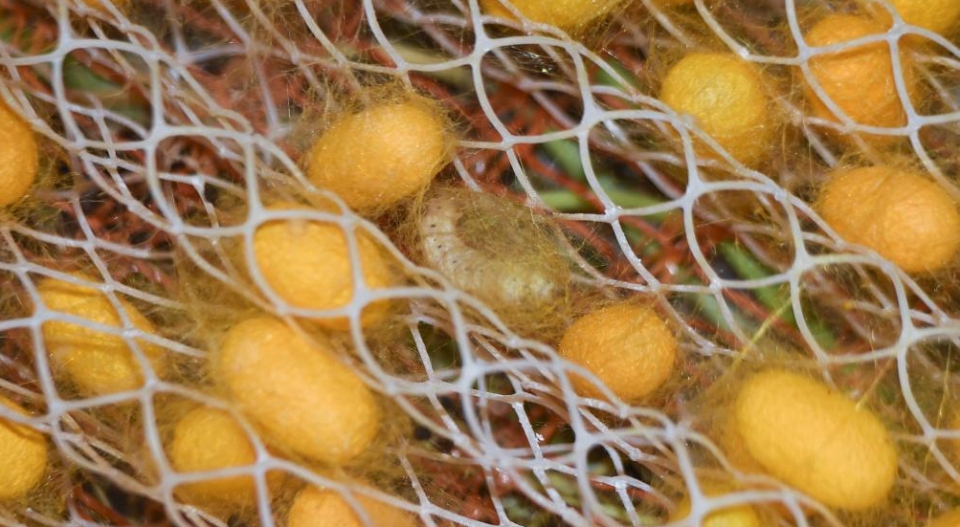 Trabajadores procesando los "capullos dorados" comprados en una cooperativa de sericultura en la aldea de Jiansheng de la ciudad de Tongxiang, provincia de Zhejiang, este de China, 26 de mayo de 2021. Tongxiang, provincia de Zhejiang, este de China, es famosa por sus más de 4.000 años de historia de la sericultura. Su tradición de cultivo de gusanos de seda y plantación de moreras ha sido catalogada por el Consejo de Estado como patrimonio cultural inmaterial nacional. Una nueva variedad de gusano de seda llamada "capullo dorado" presenta un color dorado pálido. La seda procesada de "capullo dorado" tiene mayor contenido de luteína y mejor efecto antibacteriano que la seda ordinaria. Los productos hechos con capullos son apetecidos por los mercados nacionales y extranjeros. El "capullo dorado" ha hecho una gran contribución a la mejora de la agricultura tradicional local y al aumento de los ingresos de los agricultores. Por estos días, los agricultores locales de gusanos de seda reciben la temporada de cosecha de los "capullos dorados".