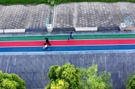 Equipos de la pista de atletismo inteligente en un parque en el distrito de Honggutan en Nanchang.