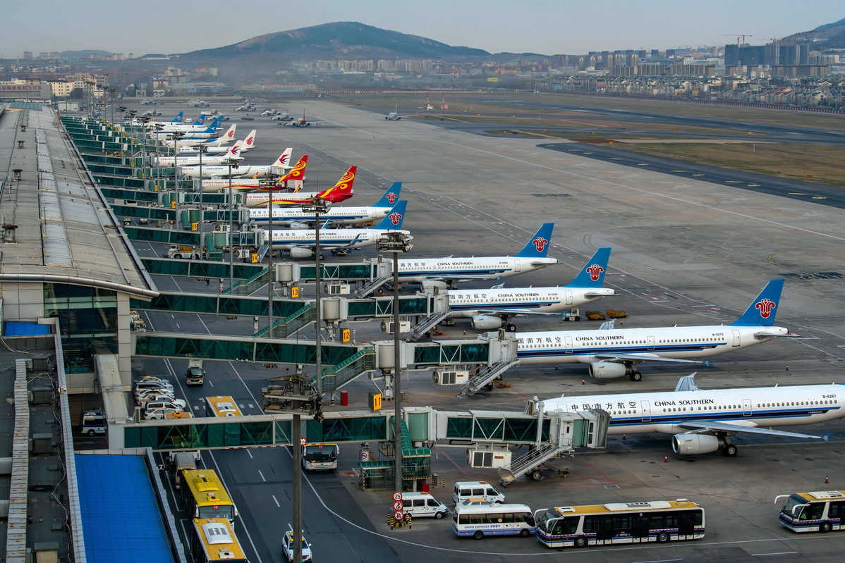 Una vista del Aeropuerto Internacional de Dalian, donde el rendimiento anual de pasajeros superó los 20 millones en 2019. Dalian es conocido como un centro de comercio, finanzas, turismo e información.