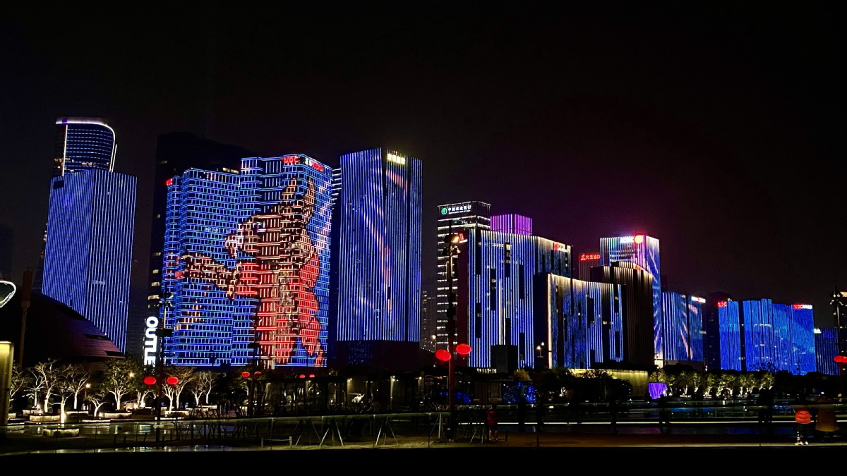 Un espectáculo de luces en Hangzhou, provincia de Zhejiang, este de China, 16 de febrero de 2021.