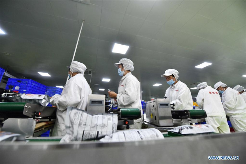 Imagen del 17 de agosto de 2021 de trabajadores empaquetando fideos de arroz Luosifen en una empresa de procesamiento de alimentos en la ciudad de Liuzhou, en la región autónoma de la etnia zhuang de Guangxi, en el sur de China. Los fideos de arroz de caracol, o "Luosifen", es un plato icónico en Liuzhou, conocido por su olor penetrante. Lleva fideos de arroz remojados en un caldo picante aderezado con caracoles de río y cubiertos con ingredientes como brotes de bambú encurtidos, alubias verdes, cacahuetes y piel de tofu. La preparación de Luosifen fue inscrita en la última lista nacional de patrimonios culturales intangibles publicada por el Consejo de Estado de China en junio de este año. Los fideos instantáneos Luosifen se han exportado a más de 20 mercados extranjeros y sus ventas anuales superaron los 10.000 millones de yuanes (unos 1.700 millones de dólares) el año pasado.