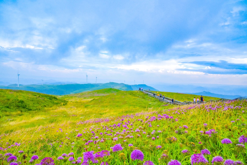 Mar de flores de ajo porro silvestre cautiva a los visitantes en Guizhou